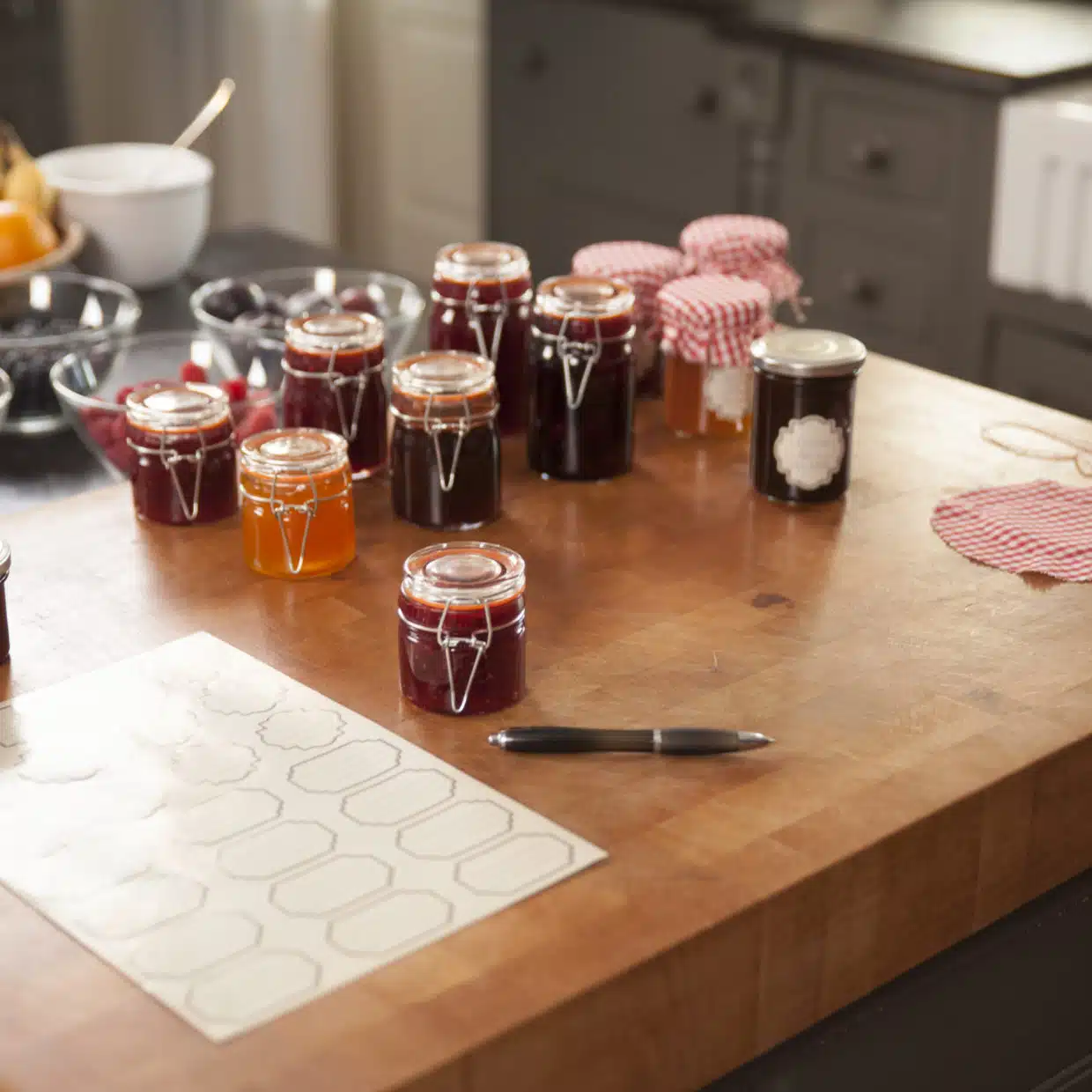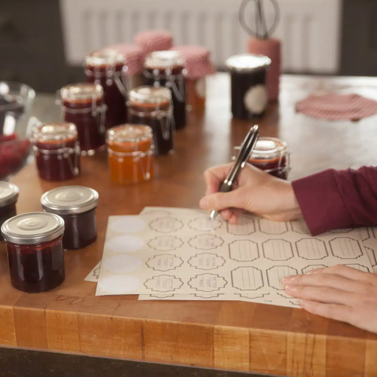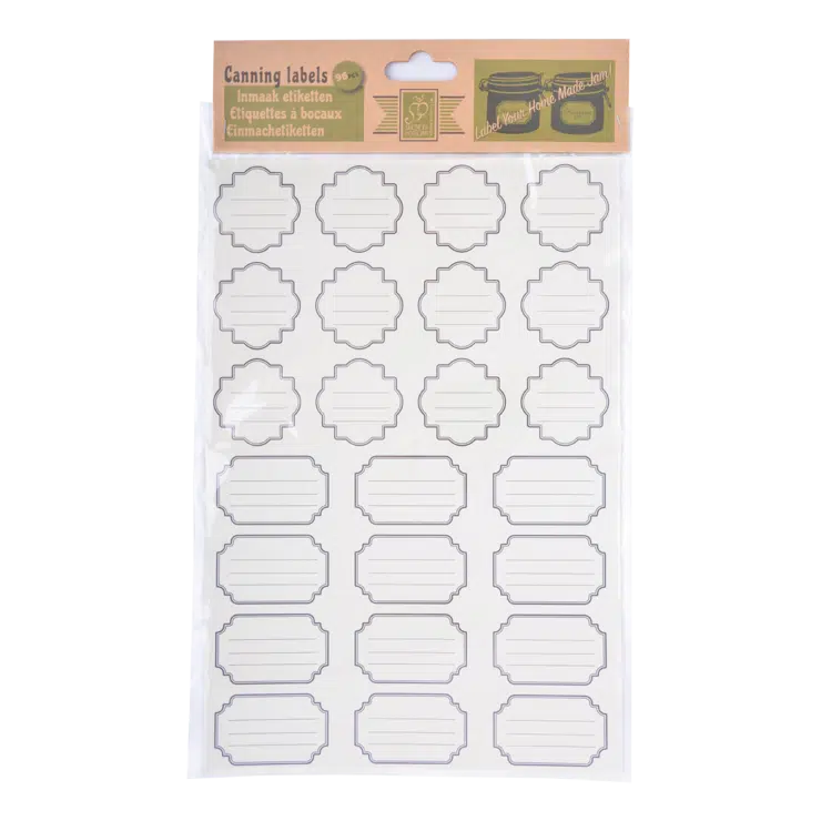 Met deze inmaaketiketten zal je niet meer vergeten wat de inhoud van een inmaak- of jampot is. Ze geven voldoende ruimte om bijvoorbeeld de jam of groente naam en de inmaakdatum te vermelden. De set omvat 96 zelfklevende stickers in twee designs.