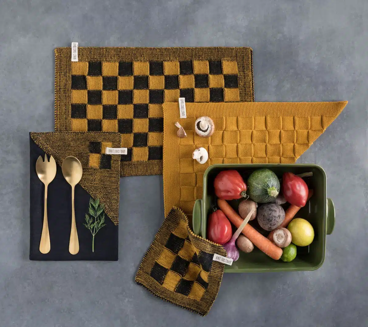 Daarnaast zijn in deze serie van Knit Factory bijpassende theedoeken, pannenlappen, schorten en placemats te verkrijgen.