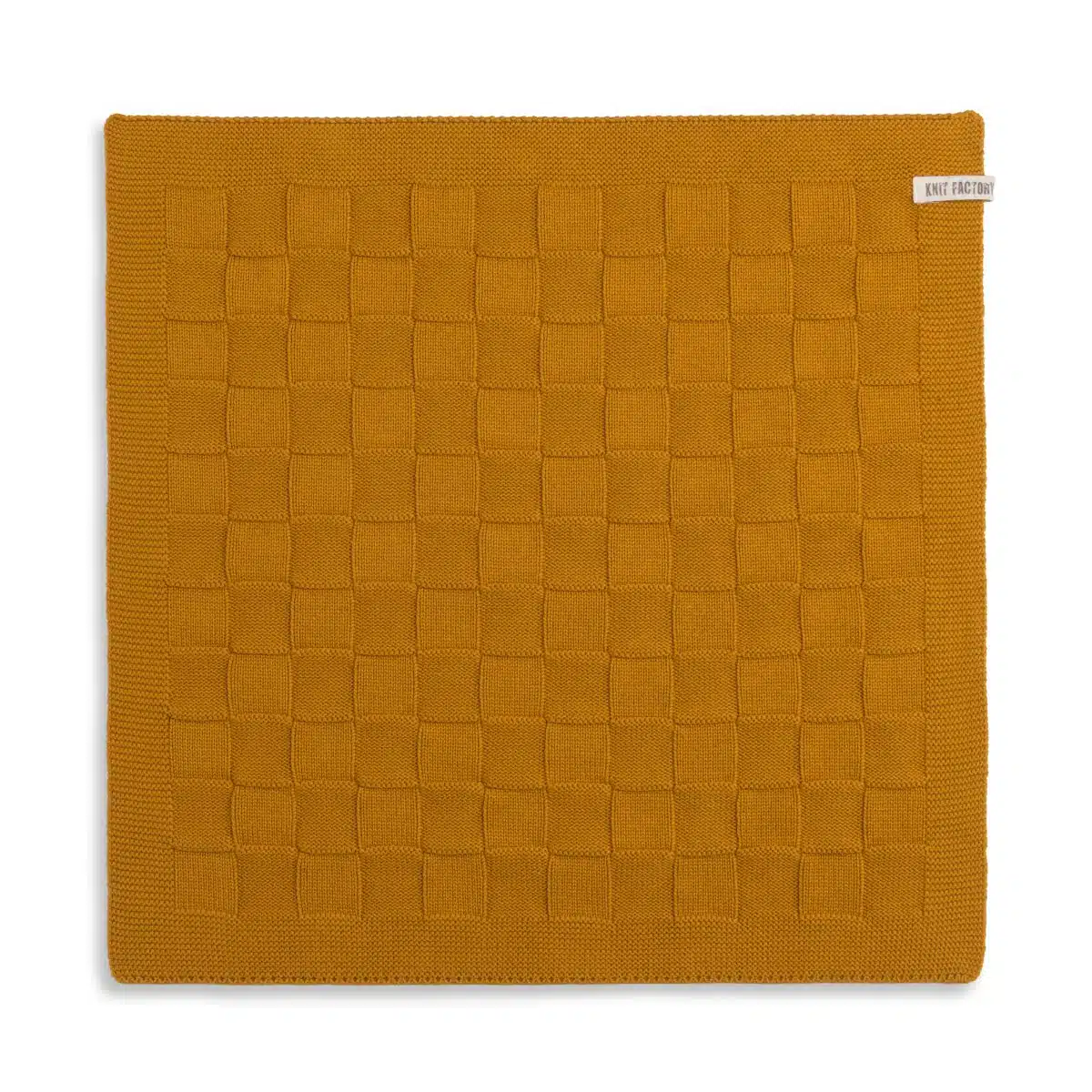 Knit Factory combineert daarmee oer-Hollands design met kwaliteit. Met deze keukendoek creëer je direct sfeer en gezelligheid in je keuken. De keukendoek heeft een grote blok patroon in de kleur oker geel.